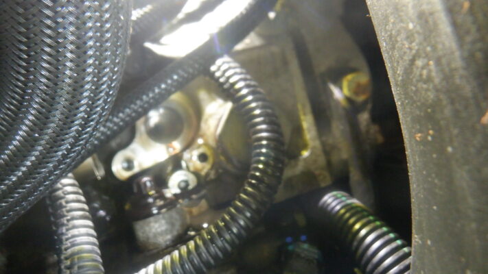 ソレノイドバルブ周りから漏れと配線側からも漏れてきています。(ぼやけてますがオイルで濡れてます)