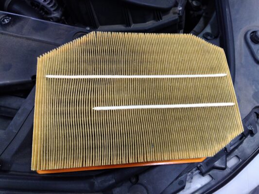 エアーエレメントは少し汚れていたのでエアーブローを行いました。