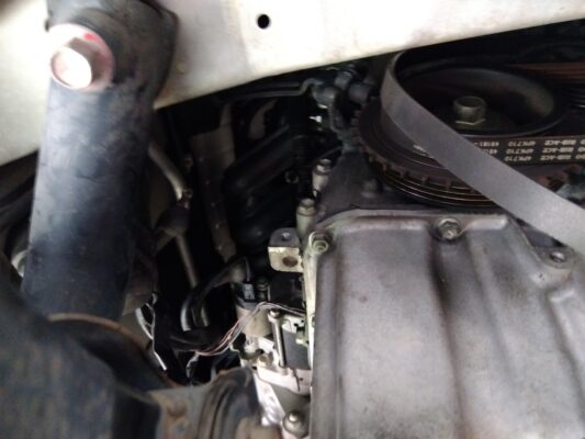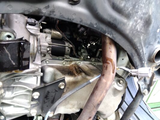 オルタネーターを抜く隙間が無いので後側エンジンマウントと右ドライブシャフトを