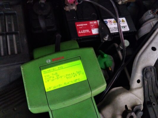 オルタネーターの発電状態を確認して今回の修理は完了です。