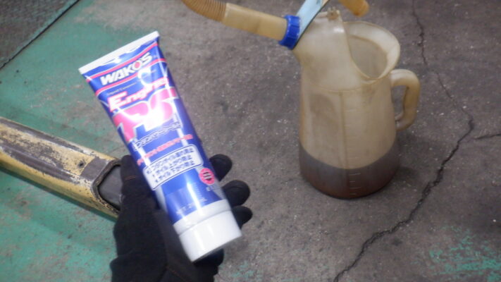 エンジンオイル交換の前にオイル量を確認するとオイルが減ってました、下回りにはオイル漏れ跡は無いので消費している可能性があります、交換と同時にWAKOSエンジンパワーシールドを入れることになりました。