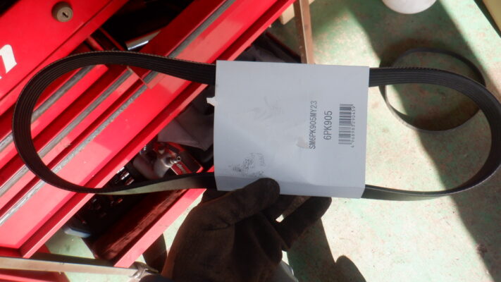 ファンベルトはフェンダーライナーをめくり、特殊工具を使用して交換します。