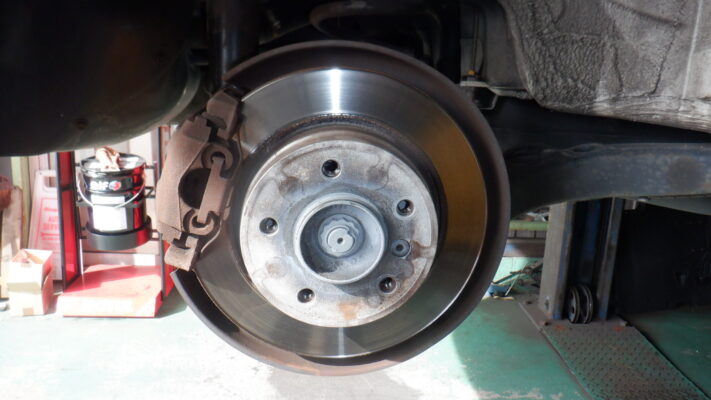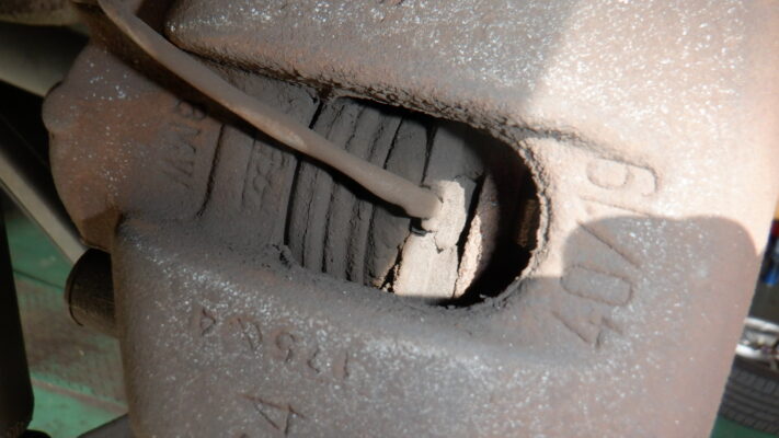 リヤ・ブレーキ点検・清掃・ブレーキパット残量5.4mm