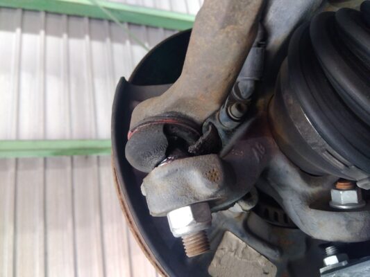 足回りを点検すると、複数個所ブーツ破れを発見しました。