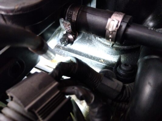 ヘッドカバーガスケット交換中、エアホースが割れてしまいました。