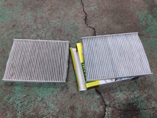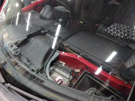 エアコンフィルターはダッシュ上側のパネルを取り外して交換します。