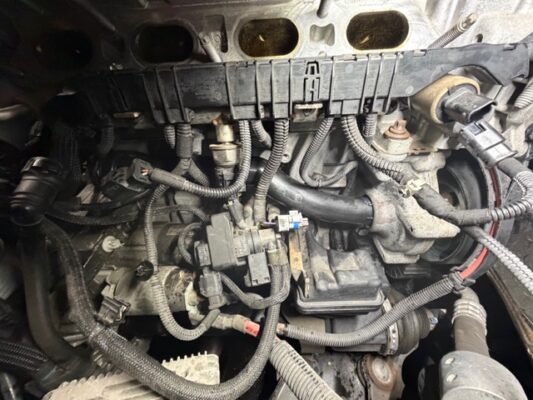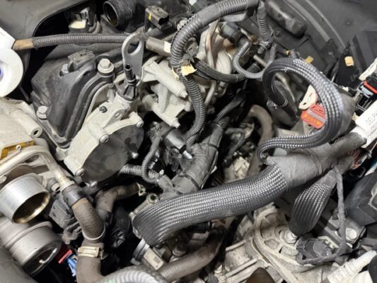↑クーラントパイプも交換しますが、インテークマニホールド下側にありますので