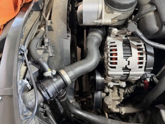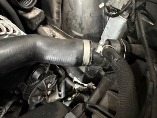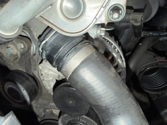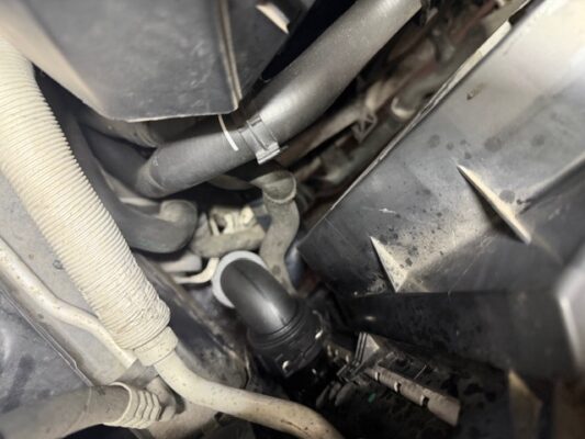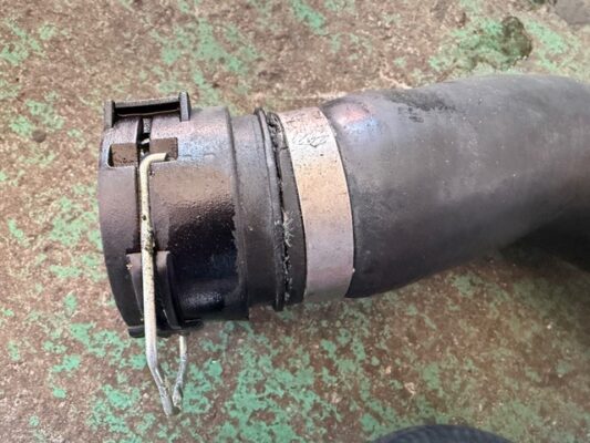 ↑ラジエターのアッパーホースです。こちらも併せて作業します。