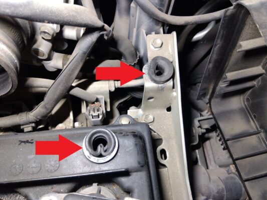エアクリーナーケースのグロメット(矢印部)が変形していたので