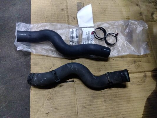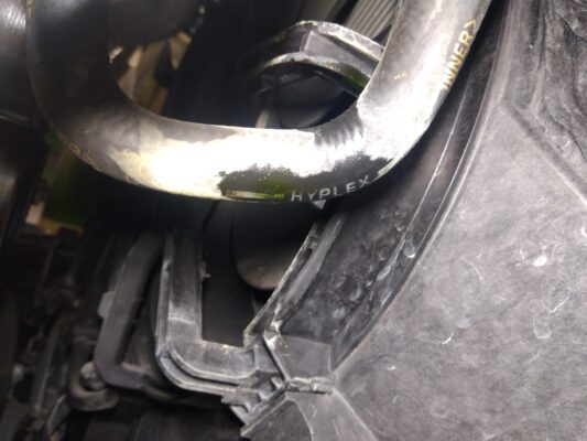 冷却水の漏れはアッパーホースからでした。