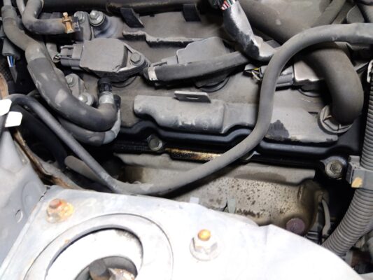 原因を見ていくと、左右バンクのヘッドカバーからオイル漏れが発生していたので