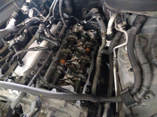 ヘッドカバーガスケットの交換はインマニを外して作業します。
