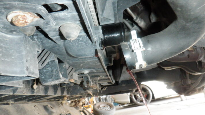 冷却水を交換・ラジエターに排出するところが無いのでロアホースを外します