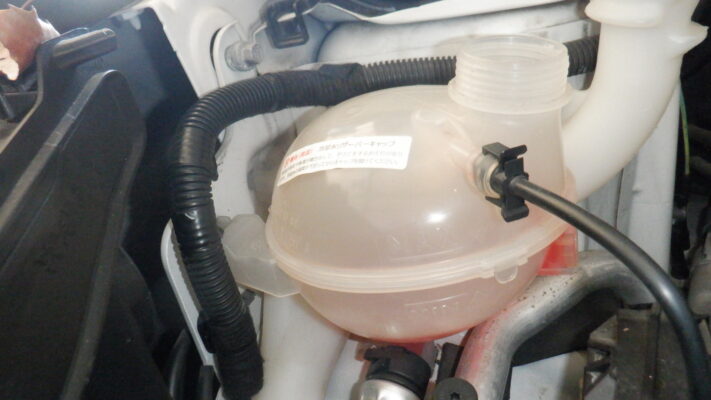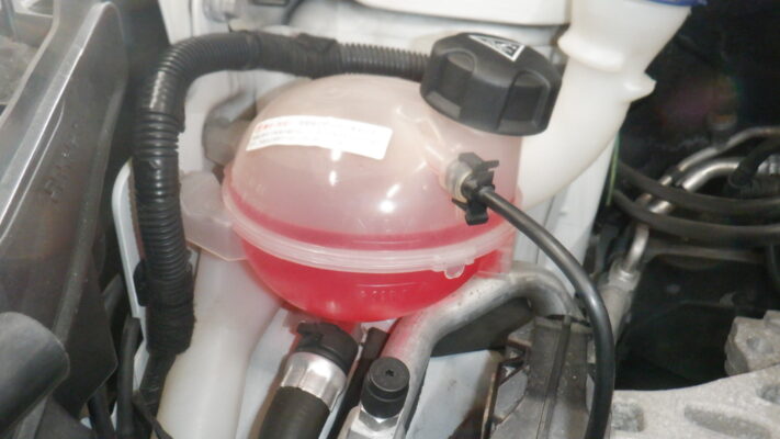 ホースを戻して、エア抜きバルブを確認しながら規定量まで補充します
