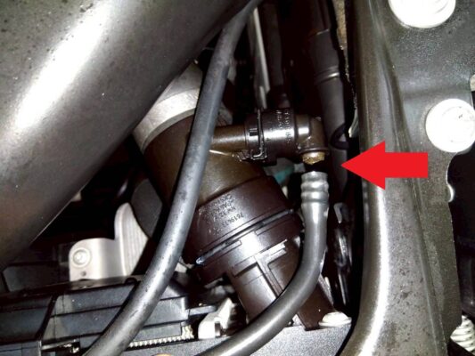 ヘッドカバーからエンジンオイルが漏れてマフラーにあたり、