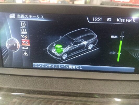 オイル量は車内のモニターで確認。